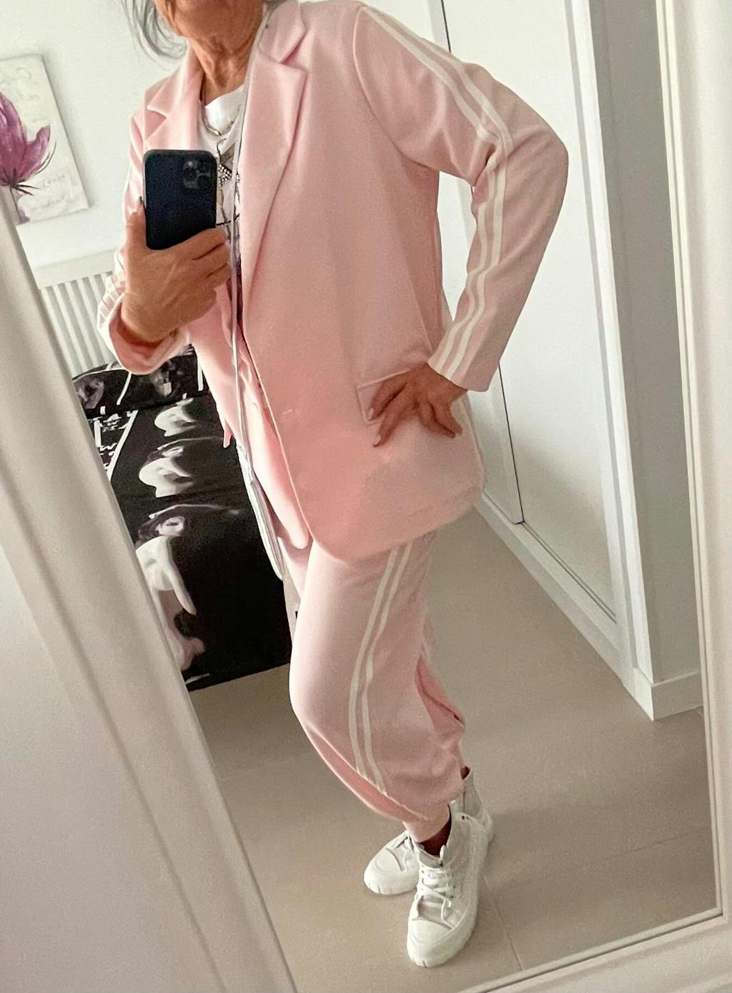 Der Blazer ist wunderschön! Er hat die perfekte Länge und mit den Streifen schaut er sportlich aus!! Toll!!