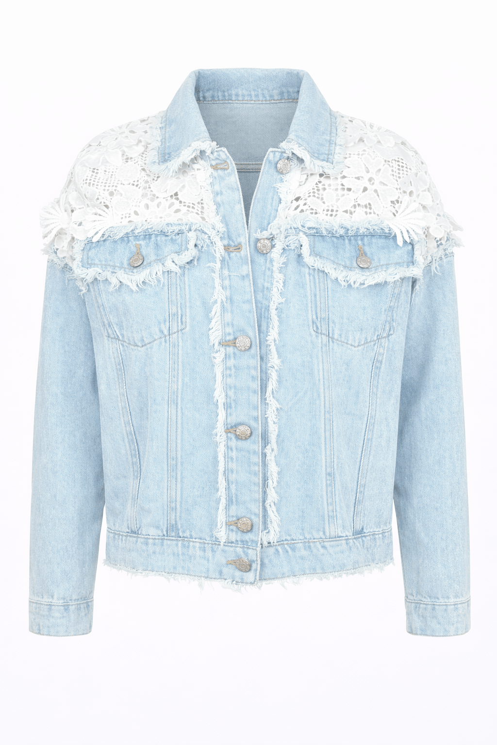 Wunderschöne sommerliche Jeansjacke im absolut stylischen Design. Angenehm zu tragen und ein Hingucker. Habe mir die beiden Jeans dazu geholt. Paßt gut auch bis Größe 44 und 46 geht auch noch.