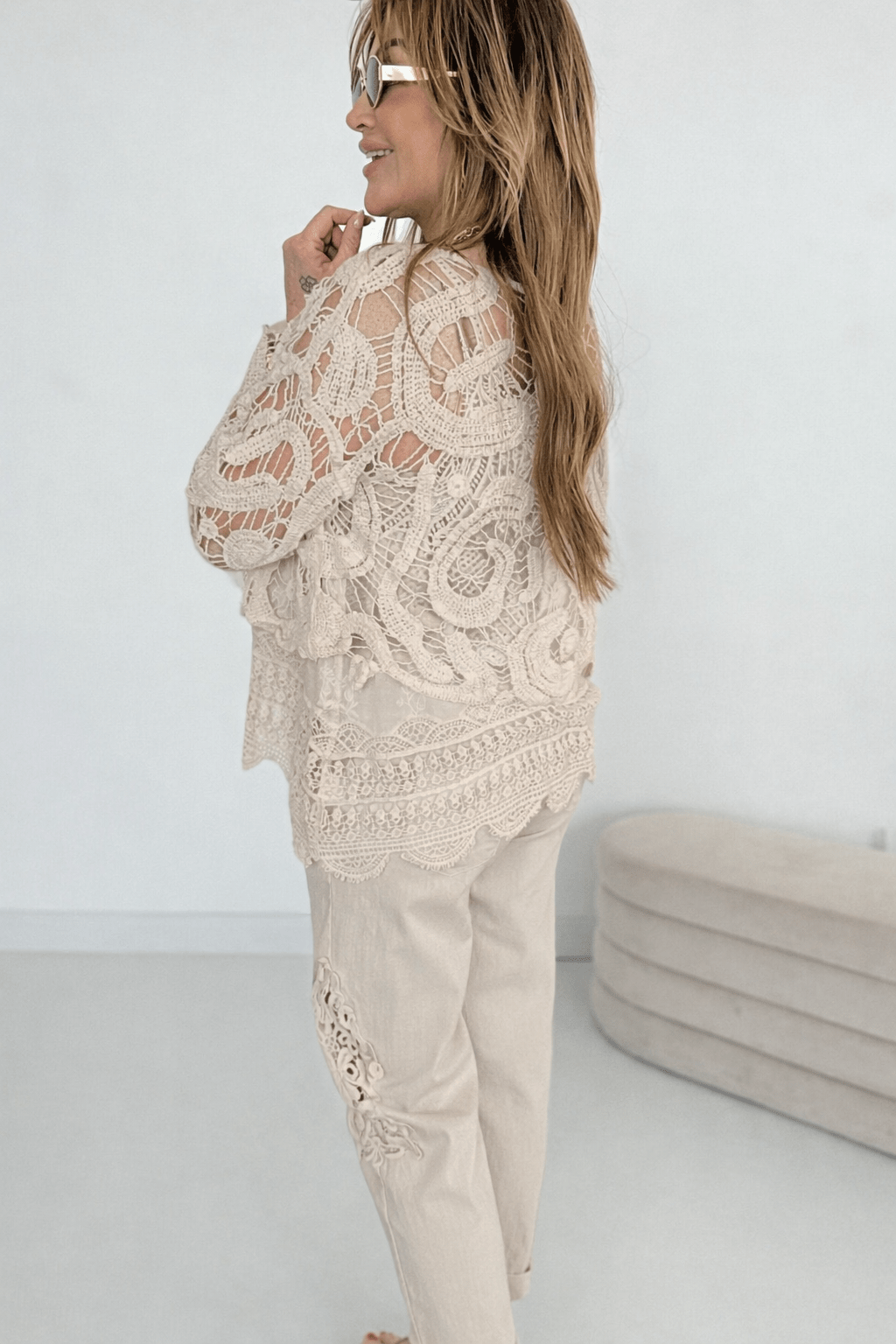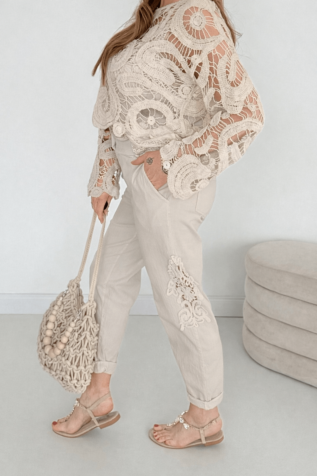 Spitzen-Details an Hosenbeinen