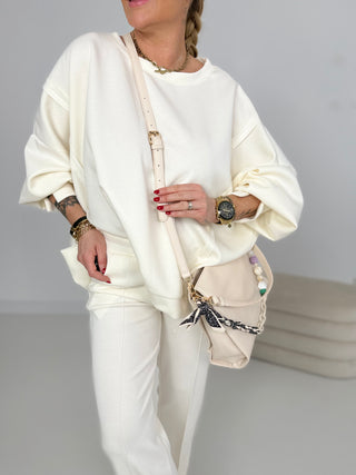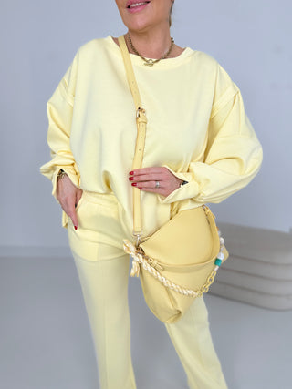 Tolle Farbe , Schickes Oberteil mit Fledermausarmen , ein wenig kurz , rutscht bei glatten Hosen hoch ,