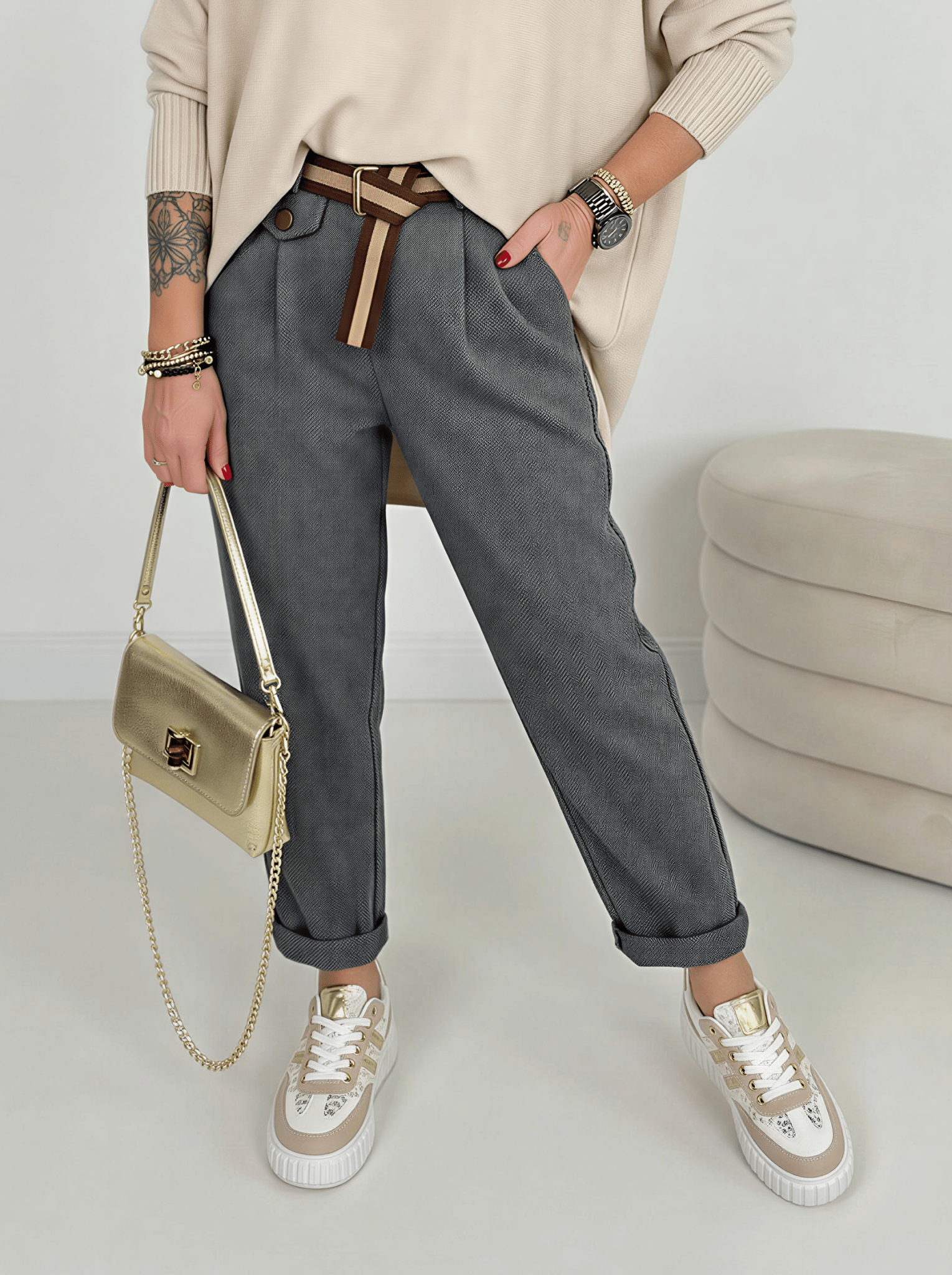 Fabric trousers including belt