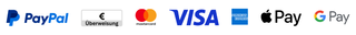 Du kannst bei uns per Paypal, per Google Pay, per Apple Pay, per