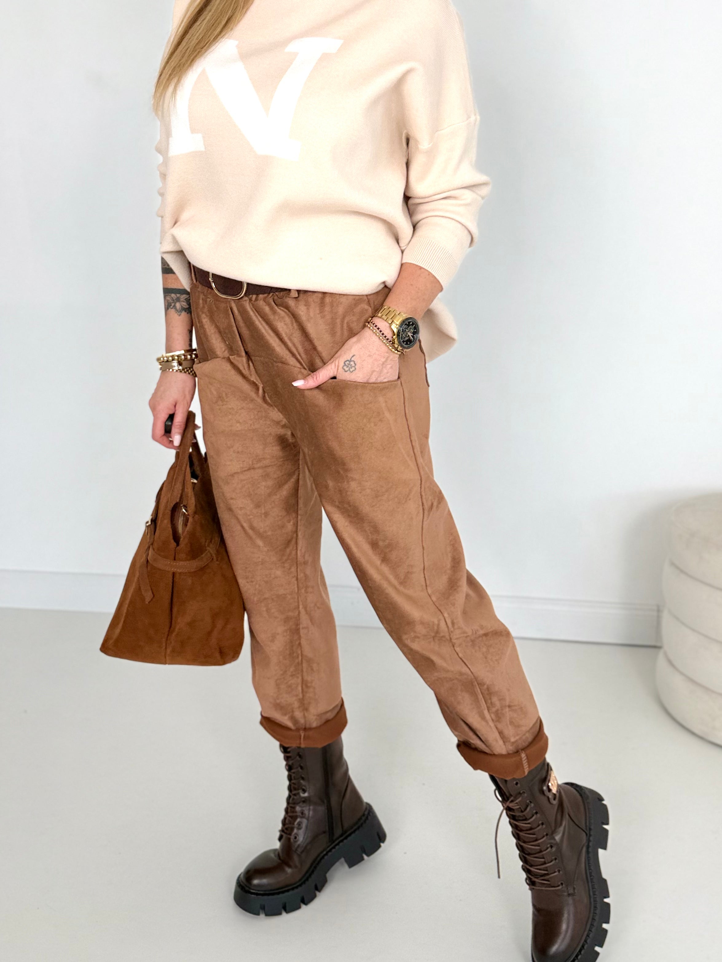 Эластичные брюки с ремнем