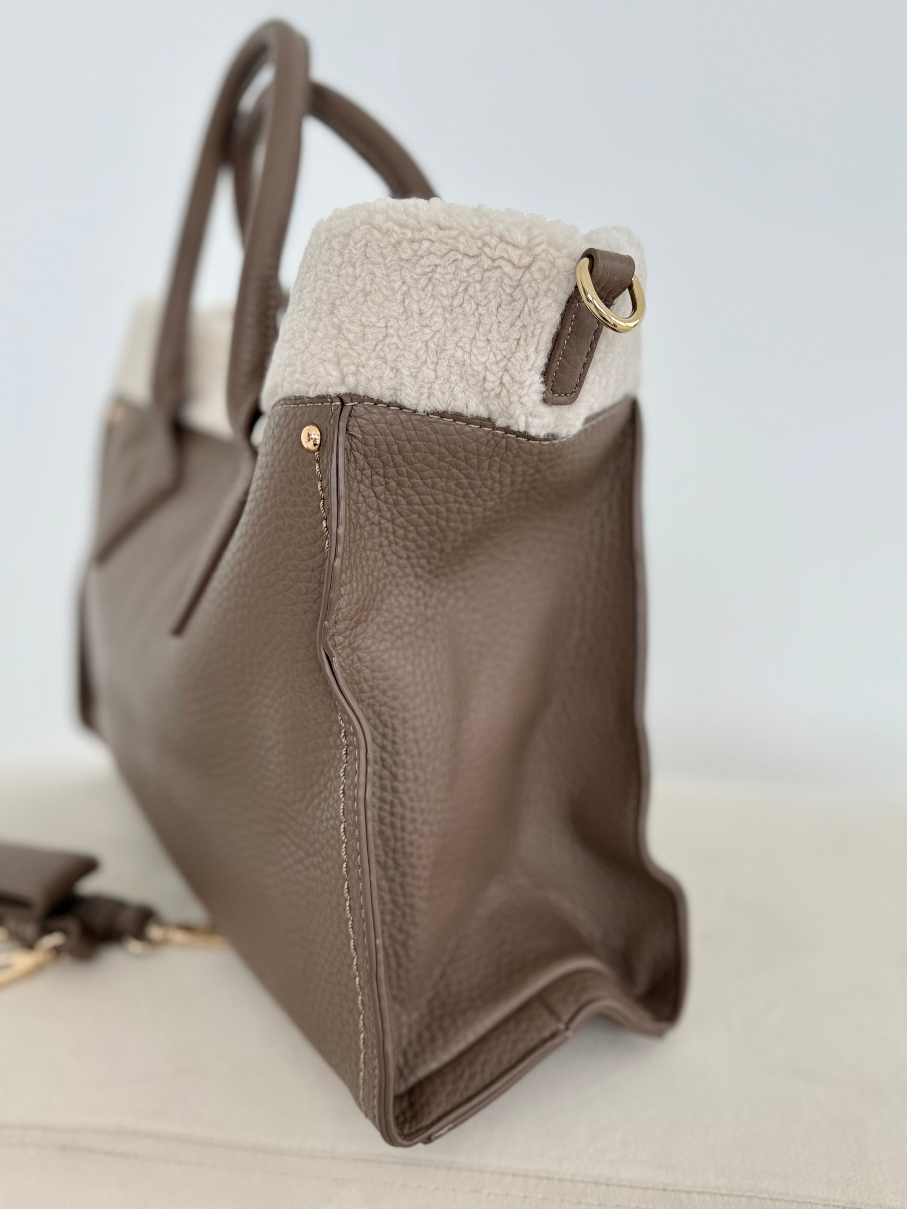 Kenarlarda oyuncak ayı kürkü süslemesi